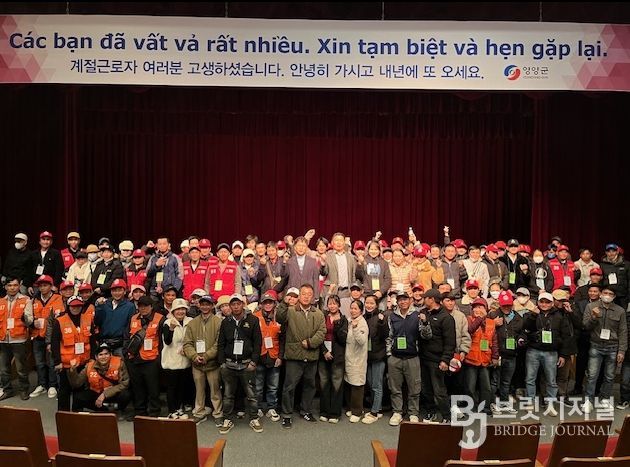 브릿지저널 정보영 기자 | 영양군은 지난 4월, 6월, 8월 MOU체결을 통해 입국한 베트남 및 라오스 출신 계절근로자 804명이 농번기 일손 부족 해소에 큰 역할을 한 뒤, 11월 2일부터 11일까지 8차례에 걸쳐 순차적으로 출국을 완료했다고 밝혔다.
