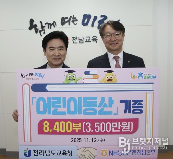 브릿지저널 김경미 기자 | 전라남도교육청과 NH농협은행 전남본부(본부장 류종필)는 12일 전남교육청에서 어린이 종합 교양지 ‘어린이동산’ 기증식을 가졌다.