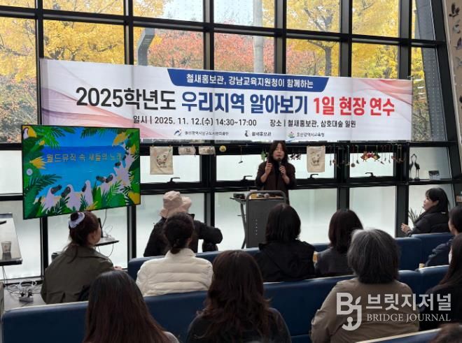 브릿지저널 윤나영 기자 | 울산 강남교육지원청은 12일 울산 남구 철새홍보관과 삼호대숲 일원에서 초등 교원 40여 명을 대상으로 ‘2학기 우리 지역 알아보기 1일 현장 연수’ 3차 프로그램을 운영했다.