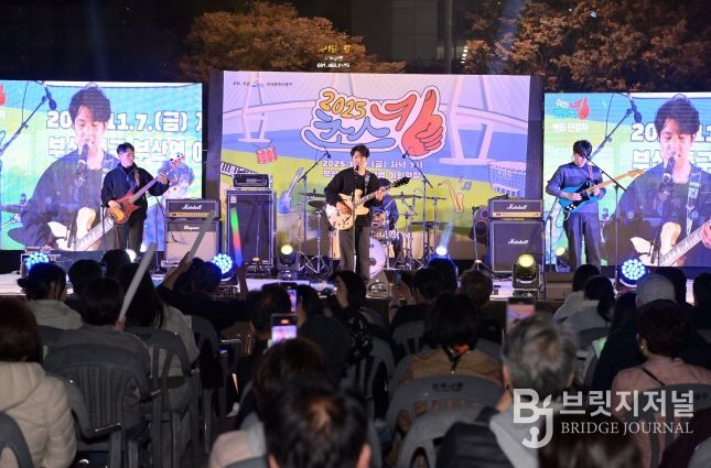 브릿지저널 윤나영 기자 | 지난 7일 저녁 7시, 2025년 초량 버스킹 페스티벌이 부산역 야외광장에서 막을 올리자, 어둠이 깔린 광장은 순식간에 열기로 가득 찼다. 500여 명의 관객이 자리를 가득 메웠고, 야광봉이 반짝이며 음악과 응원이 하나로 연결되는 장면이 펼쳐졌다.