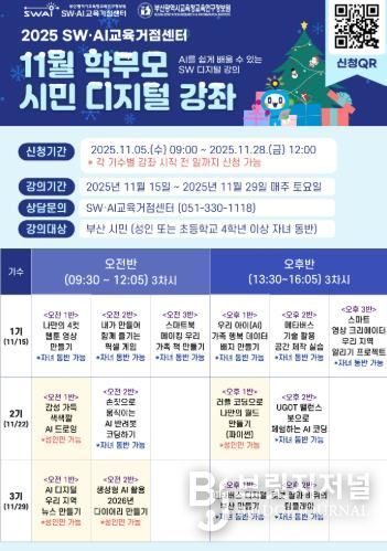 브릿지저널 윤나영 기자 | 부산광역시교육청교육연구정보원은 오는 15일부터 29일까지 매주 토요일마다 북구 덕천동 소재 SW·AI교육거점센터에서 시민 200여 명을 대상으로 ‘시민 디지털 강좌’를 운영한다.