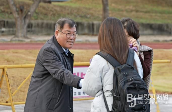 브릿지저널 김경미 기자 | 이승화 산청군수가 13일 2026학년도 대학수학능력시험이 치러지는 경상남도교육청 89(진주)지구 제19시험장(산청고등학교)을 찾아 수험생과 학부모를 격려했다.