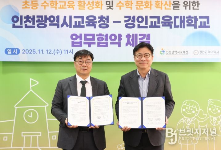브릿지저널 김경미 기자 | 인천광역시교육청은 12일 초등 수학교육 활성화와 수학 문화 확산을 위해 경인교육대학교와 업무협약을 체결했다고 밝혔다.