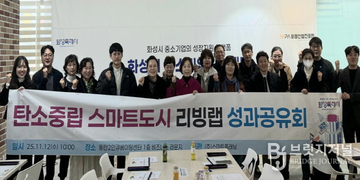 브릿지저널 김경미 기자 | 화성특례시는 지난 12일 화성동탄2인큐베이팅센터 비즈니스라운지에서 2025년 탄소중립 스마트도시 리빙랩 성과공유회를 개최했다.