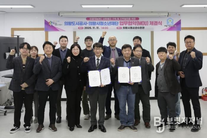 브릿지저널 김경미 기자 | 의왕도시공사는 11월 11일 의왕시청소년재단과 인공지능 네트워크 구축을 통한 청년 인재 양성 및 지역발전을 위한 업무협약을 체결했다.