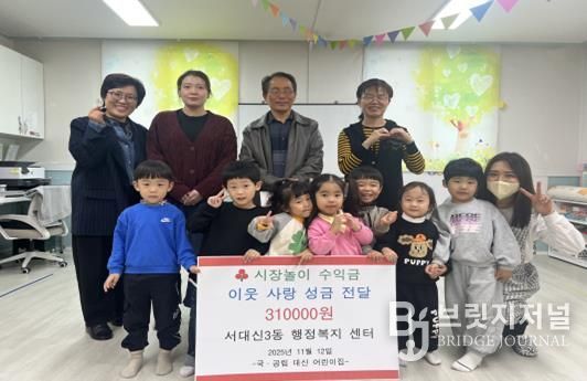 브릿지저널 윤나영 기자 | 부산 서구에 위치한 국·공립 대신어린이집은 지난 12일, 서대신3동 사랑의 이웃사촌 후원회에 성금 31만 원을 전달했다.