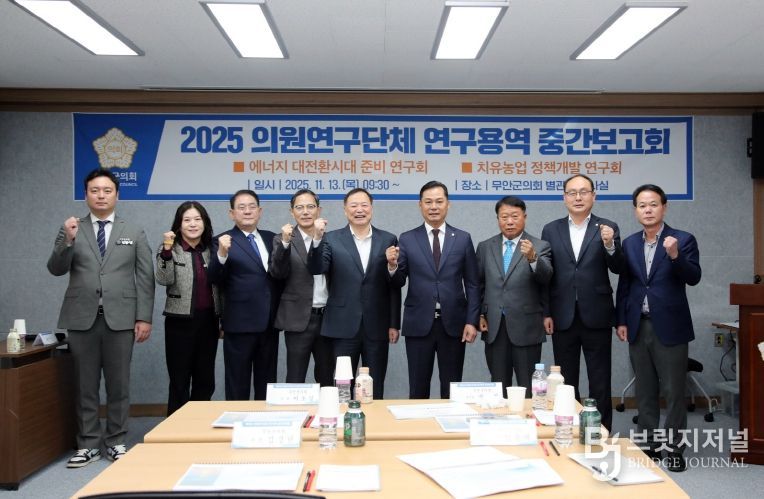 브릿지저널 김경미 기자 | 무안군의회는 11월 13일 군의회 세미나실에서 ‘에너지 기본소득’과 ‘치유농업 활성화’ 연구 등 2개 의원연구단체의 연구용역 중간보고회를 개최했다.