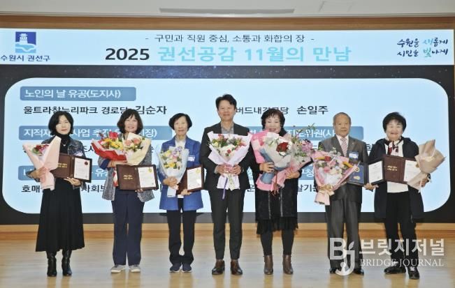 브릿지저널 김경미 기자 | 수원시 권선구는 지난 14일, 권선구청 대회의실에서 ‘권선공감 11월의 만남’을 개최하여 권선구 발전과 지역사회 공헌에 기여한 구민 및 공직자에 대한 표창 수여를 진행하고 구민과 행정이 함께하는 권선구의 모습을 보여줬다.