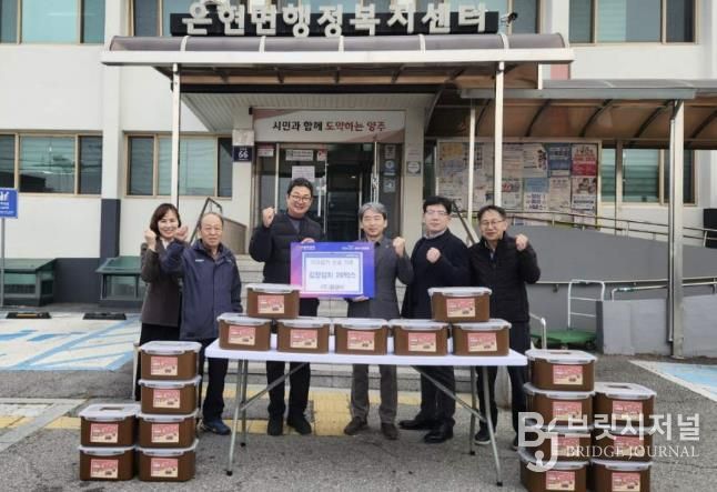 브릿지저널 김경미 기자 | 양주시 은현면이 13일 주식회사 플랜비(대표 김진성)로부터 김장 김치(10kg) 20박스를 기탁받았다.