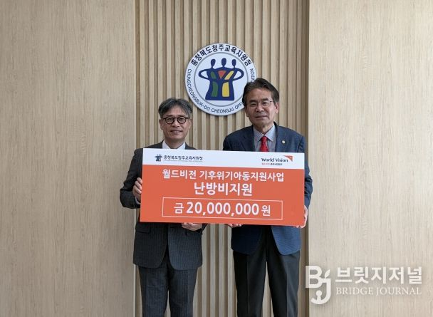 브릿지저널 김경미 기자 | 충청북도청주교육지원청과 월드비전 충북사업본부는 14일 청주교육지원청에서 기후위기아동 난방비 지원금 전달식을 열고, 청주 지역 내 기후위기로 어려움을 겪는 아동·청소년 가정에 총 2,000만원 상당의 난방비를 지원했다.