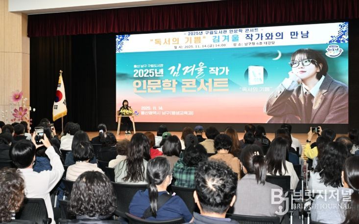 브릿지저널 윤나영 기자 | 울산 남구 구립도서관은 14일 남구청 6층 대강당에서 김겨울 작가를 초청해 올해 마지막 인문학 콘서트 강연을 개최했다.