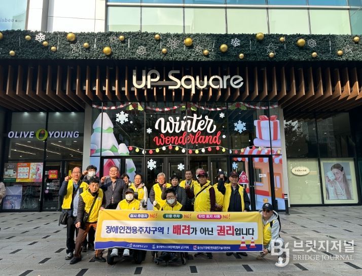 브릿지저널 윤나영 기자 | 울산 남구는 14일 삼산동 일원에서 장애인편의증진기술지원센터, 지체장애인협회 남구지회(지회장 이대광) 회원 등 19명이 함께 장애인전용주차구역 민‧관 합동 점검과 홍보 캠페인을 실시했다.