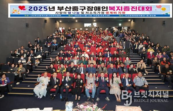 브릿지저널 윤나영 기자 | 부산 중구는 지난 12일 부산영화체험박물관 영상홀에서 중구 장애인과 가족, 자원봉사자, 후원자 등이 참석한 가운데 (사)중구장애인협회 주관으로 ‘2025년 장애인복지증진대회’를 개최했다.