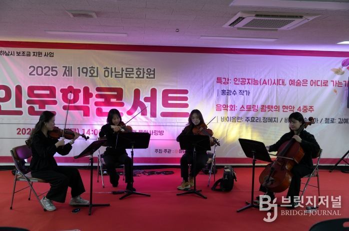 브릿지저널 김경미 기자 | 하남문화원은 2025년 11월 13일 오후 2시, 하남문화원 대강당에서 인문학 콘서트 '인공지능의 시대, 예술은 어디로 가는가?'를 성황리에 개최했다. 올해로 19번째를 맞은 이번 행사는 급격히 변화하는 인공지능 시대 속에서 예술의 본질과 인간 창의성의 의미를 성찰하기 위해 기획됐었다.