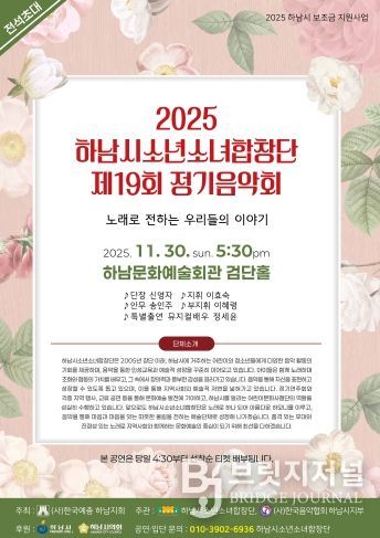 하남시소년소녀합창단 관계자는 “아이들이 한 해 동안 쌓아온 노력과 열정을 노래로 전하는 무대인만큼, 많은 시민 여러분의 따뜻한 박수와 응원을 부탁 드린다”고 전했다.
