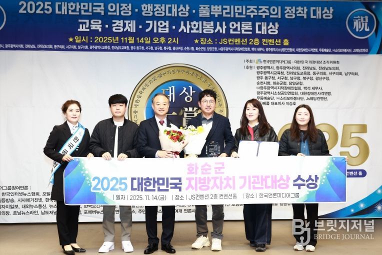 브릿지저널 김경미 기자 | 화순군이 14일 열린 ‘제9회 대한민국 행정·의정 및 지역발전·사회공헌 우수기관’ 시상식에서 지방자치 부문 유일 수상인 기관 대상을 받았다.