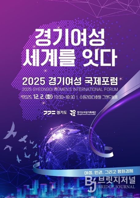 브릿지저널 김경미 기자 | 경기도가 ‘여성·인권·평화’ 글로벌 의제를 선도하고 경기도형 평화경제 모델을 제시하는 ‘2025 경기여성 국제포럼’을 12월 2일 수원 라마다호텔에서 개최한다.