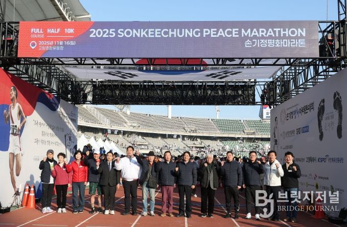 브릿지저널 김경미 기자 | 16일 ‘2025 손기정 평화마라톤대회’가 열린 고양종합운동장, 이동환 고양특례시장은 환영사를 통해 “광복 80주년을 기념한 뜻깊은 대회, 도로 위를 맘껏 달리며 자유를 만끽하고 광복의 의미를 되새기길 바란다”고 말했다.