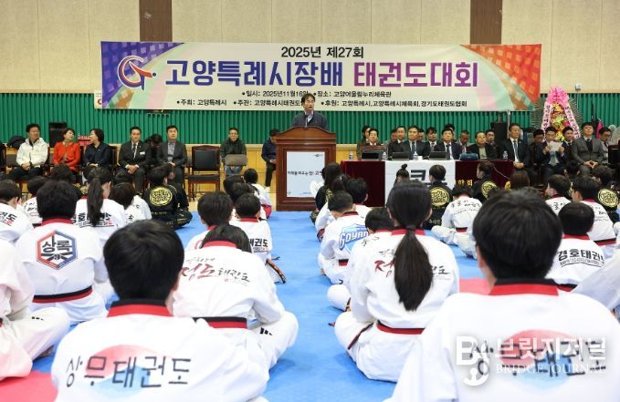 브릿지저널 김경미 기자 | 2025년 제27회 고양특례시장기 태권도대회가 16일 고양어울림누리 체육관에서 개최됐다. 이동환 고양특례시장은 “갈고닦은 실력과 기량을 유감없이 발휘해 후회 없는 경기를 펼쳐주길”이라고 말했다.