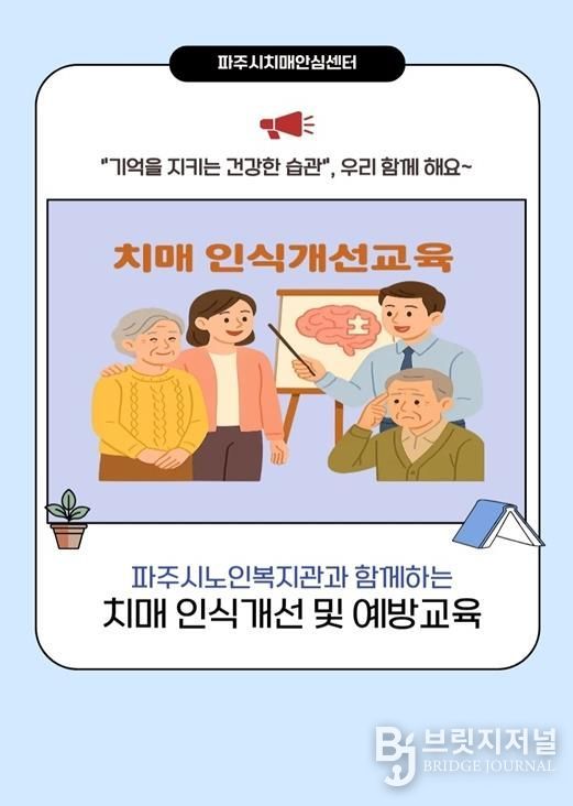 한편, 이번 교육은 파주시치매안심센터와 파주시노인복지관의 협력사업으로 추진되며, 교육 종료 후에는 참여 어르신을 대상으로 치매 조기검진과 예방 상담 서비스도 함께 제공할 계획이다.