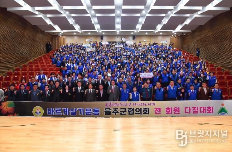 브릿지저널 윤나영 기자 | 바르게살기운동 울주군협의회가 17일 군청 알프스홀에서 이순걸 울주군수, 울주군의회 최길영 의장 및 군의원, 바르게살기운동 12개 읍면 회원 등이 참석한 가운데 ‘공동체의식 함양교육 및 전 회원 다짐대회’를 개최했다.