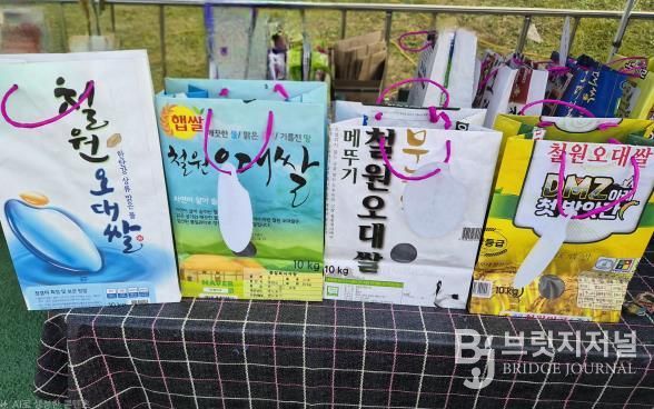 브릿지저널 윤나영 기자 | 버려지는 쌀봉투가 실용적인 종이가방으로, 커피 찌꺼기가 철원군 캐릭터 철궁이와 철루미 마그넷으로 재탄생했다.