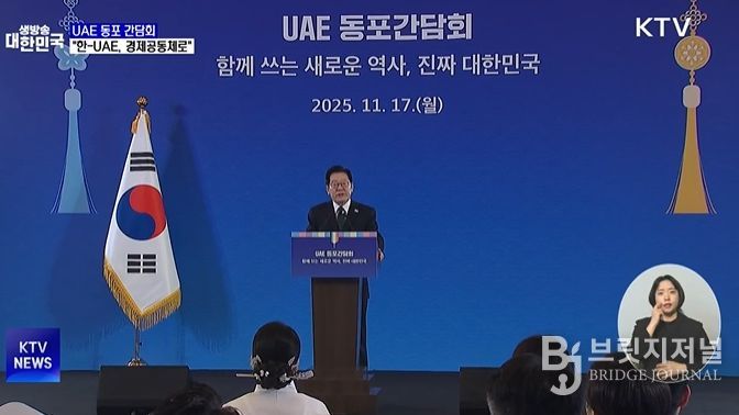 브릿지저널 김경미 기자 | 중동·아프리카 순방을 나선 이재명 대통령은 아랍에미리트(UAE) 동포들을 격려하기 위해 17일(현지시간) 아부다비에서 만찬을 겸한 동포간담회를 개최했다.