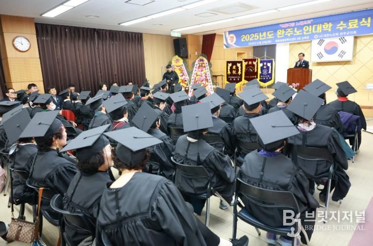 브릿지저널 윤나영 기자 | 완주노인대학이 18일 봉동읍행정복지센터에서 2025년 수료식을 열고, 80명 어르신들이 8개월간의 평생학습 여정을 마무리했다.