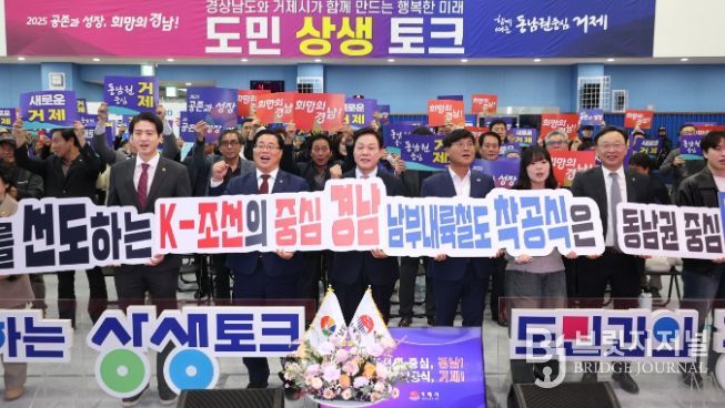 브릿지저널 김경미 기자 | 경상남도는 18일 거제 반다비체육센터에서 열린 ‘도민 상생토크’에서 기업혁신파크, 광역교통망, 미래산업 등을 연계한 성장전략을 제시하며 지원 의지를 밝혔다.