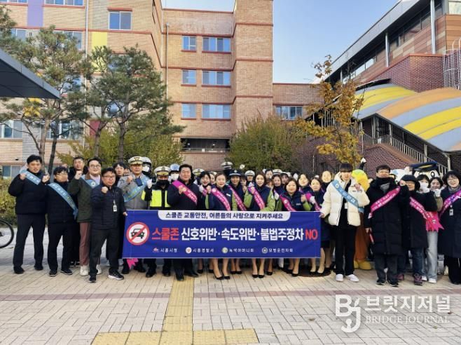 브릿지저널 김경미 기자 | 시흥시는 지난 11월 18일 오전 은빛초등학교 앞에서 초등학생들의 안전한 등굣길을 조성하기 위해 ‘어린이 교통안전 캠페인’을 진행했다.