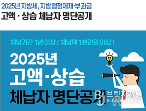 브릿지저널 김경미 기자 | 인천광역시는 11월 19일 1천만 원 이상의 지방세와 지방행정제재·부과금을 1년 이상 납부하지 않은 고액·상습 체납자 587명의 명단을 시 누리집과 지방세 납부 사이트 위택스에 공개했다.