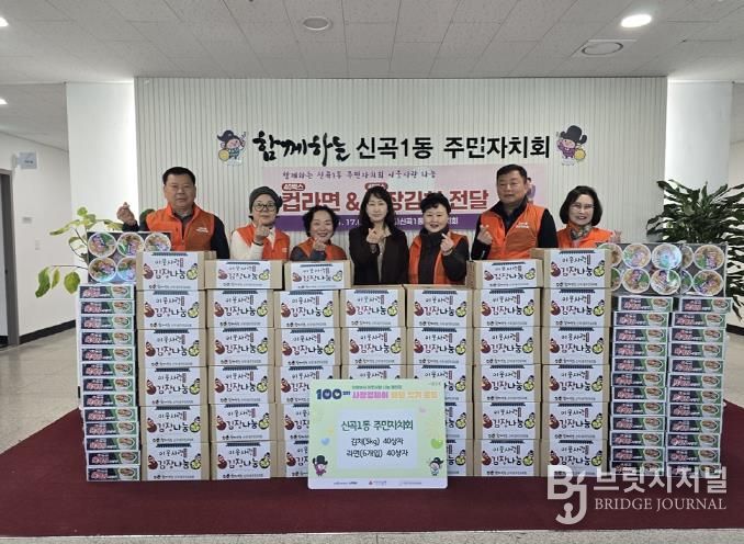 브릿지저널 김경미 기자 | 의정부시 신곡1동주민센터는 11월 17일 신곡1동 주민자치회가 ‘100일간 사랑의 릴레이 배턴 잇기’에 동참해 취약계층을 위한 김장김치 40상자(5kg 단위)와 컵라면 40상자(6개입)를 기부했다고 밝혔다.