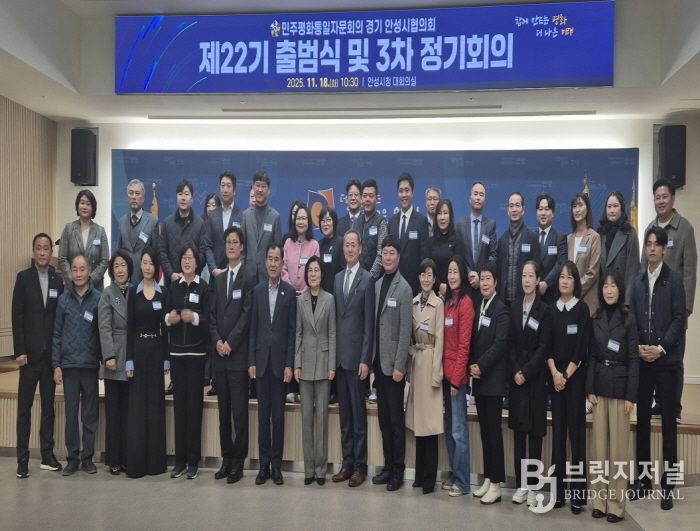 브릿지저널 김경미 기자 | 민주평화통일자문회의 안성시협의회는 18일 오전, 안성시청 대회의실에서 자문위원 39명이 참석한 가운데 '제22기 민주평화통일자문회의 출범식 및 2025년 3분기 정기회의'를 개최했다.
