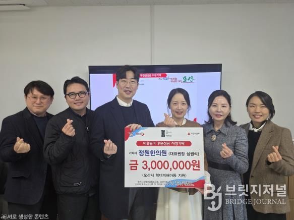 브릿지저널 김경미 기자 | 오산시는 정원한의원이 지난 18일 관내 학대피해아동 지원을 위해 지정후원금 300만 원을 기탁했다고 밝혔다.