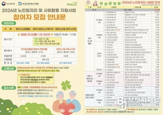 브릿지저널 김경미 기자 | 양주시가 오는 12월 8일부터 10일까지 3일간 ‘2026년 노인일자리 및 사회활동 지원사업’ 참여자 2,710명을 모집한다.