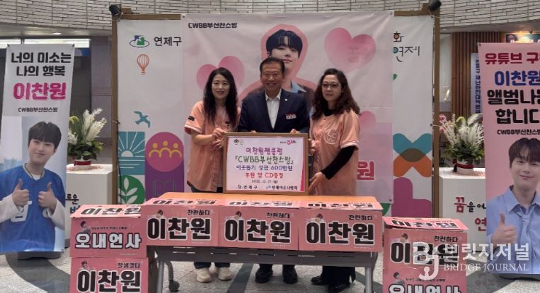브릿지저널 윤나영 기자 | 연제구는 11월 17일 가수 이찬원 팬클럽(CWBB부산찬스방)으로부터 지역 내 어려운 이웃을 돕기 위한 성금 600만 원을 전달받았다.