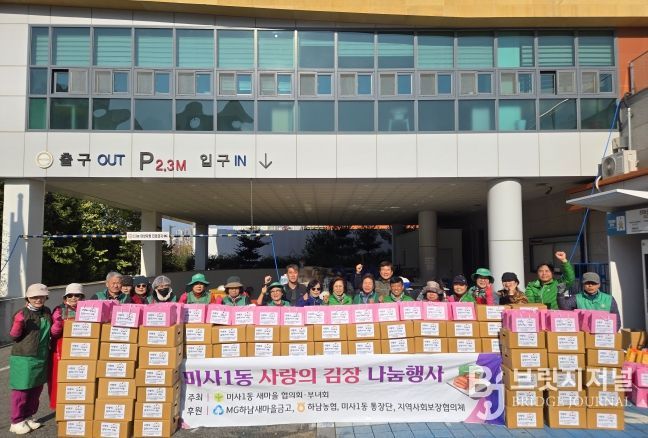 브릿지저널 김경미 기자 | 하남시 미사1동 새마을협의회(회장 김성호)와 부녀회(회장 유정자)는 2025년 11월 19일, 본격적인 겨울을 맞아 관내 소외계층 100가구에 전달할 ‘사랑의 김장김치 나눔 행사’를 성황리에 진행했다.