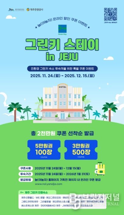 할인 대상은 제주지역 그린키 인증 숙소로 한정되며, 투숙 가능 기간은 2026년 1월 31일까지다.
