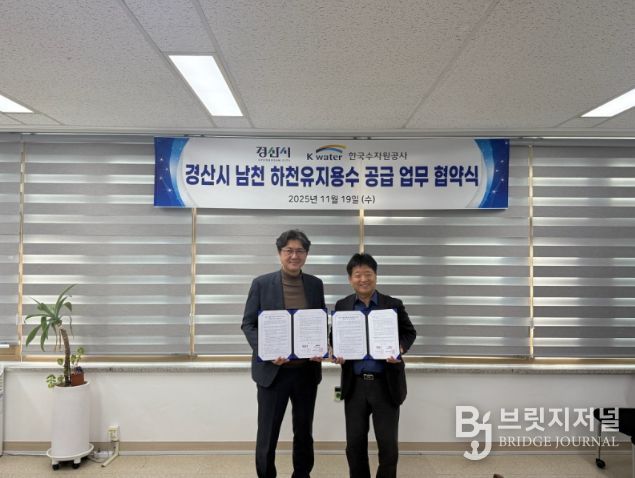 브릿지저널 정보영 기자 | 경산시는 19일 맑은 물 사업본부에서 한국수자원공사 운문권 지사와‘남천 하천유지용수(환경 개선 용수) 공급’을 위한 업무협약을 체결했다고 밝혔다.