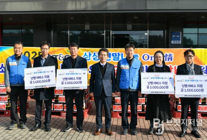 브릿지저널 정보영 기자 | 영주시는 지난 20일 KT·G 영주공장에서 ‘2025년 KT·G 상상 연말나눔 on-情‘ 김치 및 난방비 후원 전달식’을 개최했다고 밝혔다.