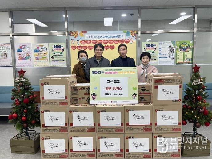 이봉득 동장은 “매년 지역사회에 온정을 전하기 위해 힘써주시는 조성조 목사님과 고산교회 성도분들께 감사드린다”며 “기탁해 주신 라면과 함께 고산교회의 따뜻한 마음을 이웃분들께 잘 전할 수 있도록 노력하겠다”고 말했다.