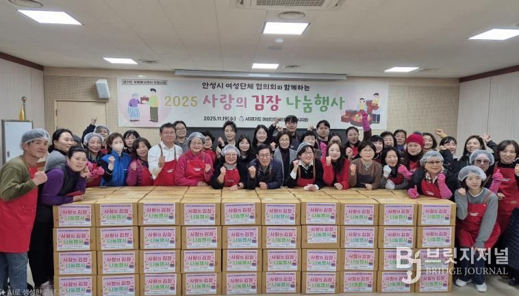 브릿지저널 김경미 기자 | 경기도 여성단체협의회 안성시지회은 지난 19일 안성농업기술센터 1층 조리실에서 ‘사랑의 김장 나눔’ 행사를 진행했다고 밝혔다. 이번 행사는 지역사회의 소외된 이웃들에게 따듯한 나눔의 손길을 전하기 위한 뜻깊은 자리였다.