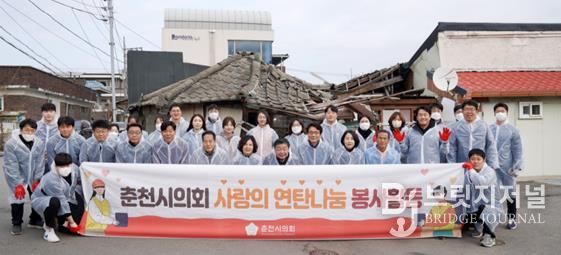 브릿지저널 윤나영 기자 | 춘천시의회는 11월 20일 오전 9시 30분부터 11시까지 근화동 일원에서 '사랑의 연탄나눔 봉사 활동'을 진행했다.