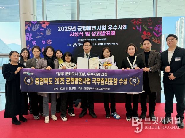 브릿지저널 김경미 기자 | 충북도가 울산전시컨벤션센터(UECO)에서 치러진 ‘2025 지방시대 엑스포’ 이튿날 행사인 ‘2025 지역균형발전사업 우수사례 시상식 및 성과발표회’에서 국무총리 표창을 수상했다.