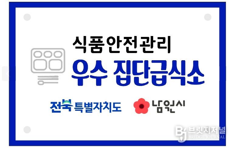 브릿지저널 윤나영 기자 | 남원시는 작년에 이어 올해에도 식품안전관리 우수 집단급식소 3개소를 지정했다고 밝혔다.