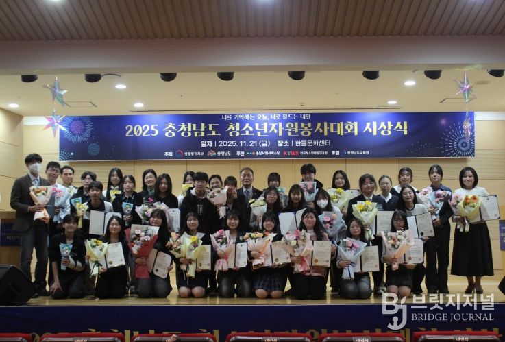 브릿지저널 정보영 기자 | 충남도는 21일 천안 한들문화센터에서 ‘2025 충청남도 청소년 자원봉사 대회’를 성황리에 개최했다.