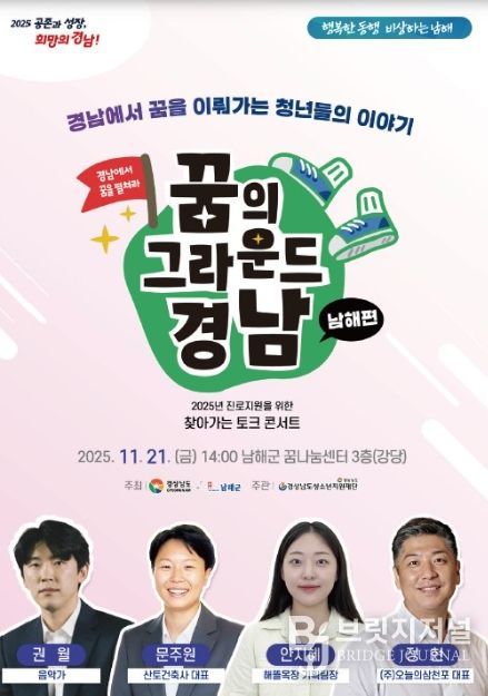 브릿지저널 김경미 기자 | 경남도는 21일 남해 꿈 나눔센터 강연장에서 경남 청소년 꿈 아카데미 ‘찾아가는 토크 콘서트’를 개최했다.