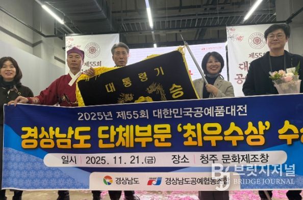 브릿지저널 김경미 기자 | 경상남도는 21일 청주시 문화제조창에서 열린 ‘제55회 대한민국 공예품대전 시상식’에서 3년 연속 단체 최우수상(국가유산청장상)을 수상하고 대통령기를 수여받았다고 밝혔다.