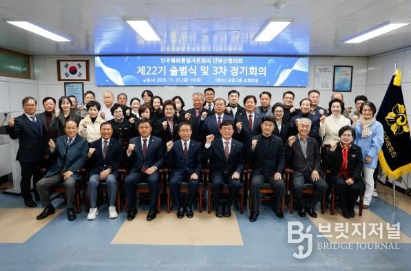 브릿지저널 김경미 기자 | 민주평화통일자문회의 단양군협의회는 11월 21일 오전 10시 30분 단양군청 소회의실에서 단양군수, 자문위원 등 45명이 참석한 가운데 ‘제22기 출범식 및 2025년 3차 정기회의’를 개최했다.