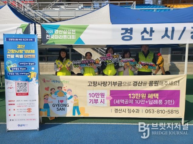 브릿지저널 정보영 기자 | 경산시는 23일 경산시민운동장에서 시작하여 경산시 일대를 돌아오는 2025 삼성현 전국 마라톤대회에서 경산 고향사랑기부제 홍보를 실시했다.